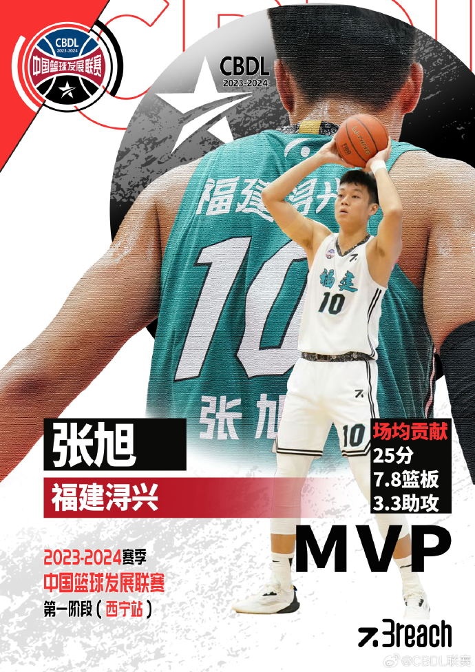 直播吧11月27日讯 CBDL官方更新微博,2023-2024赛季【CBDL】中国篮球发展联赛第一阶段(青海西宁站)已结束,福建队张旭荣获本站MVP。