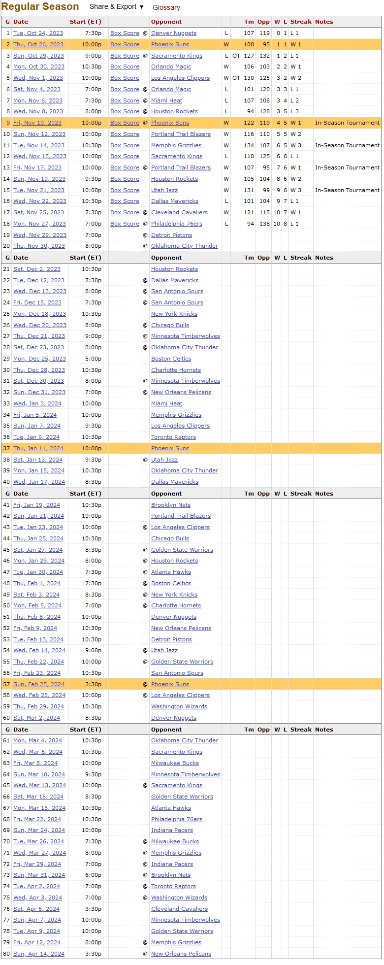 由于赛季开始前NBA官方已经确定80场常规赛的赛程,只有2天的季中锦标赛淘汰赛赛程待定,而在今日公布淘汰赛首日赛程后,NBA官方也没有对后续的赛程做调整通知,因此: