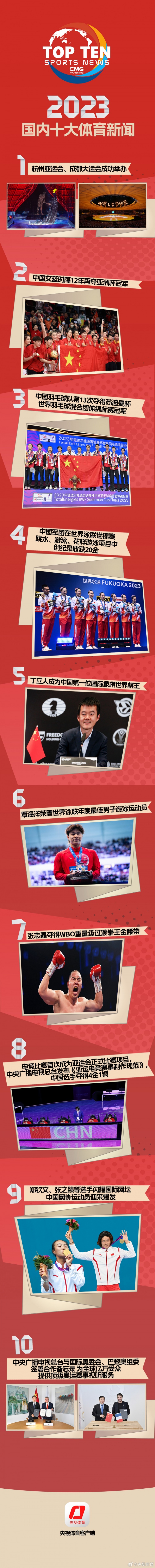 央视评选23年国内十大体育新闻:中国女篮时隔12年问鼎亚洲杯入选