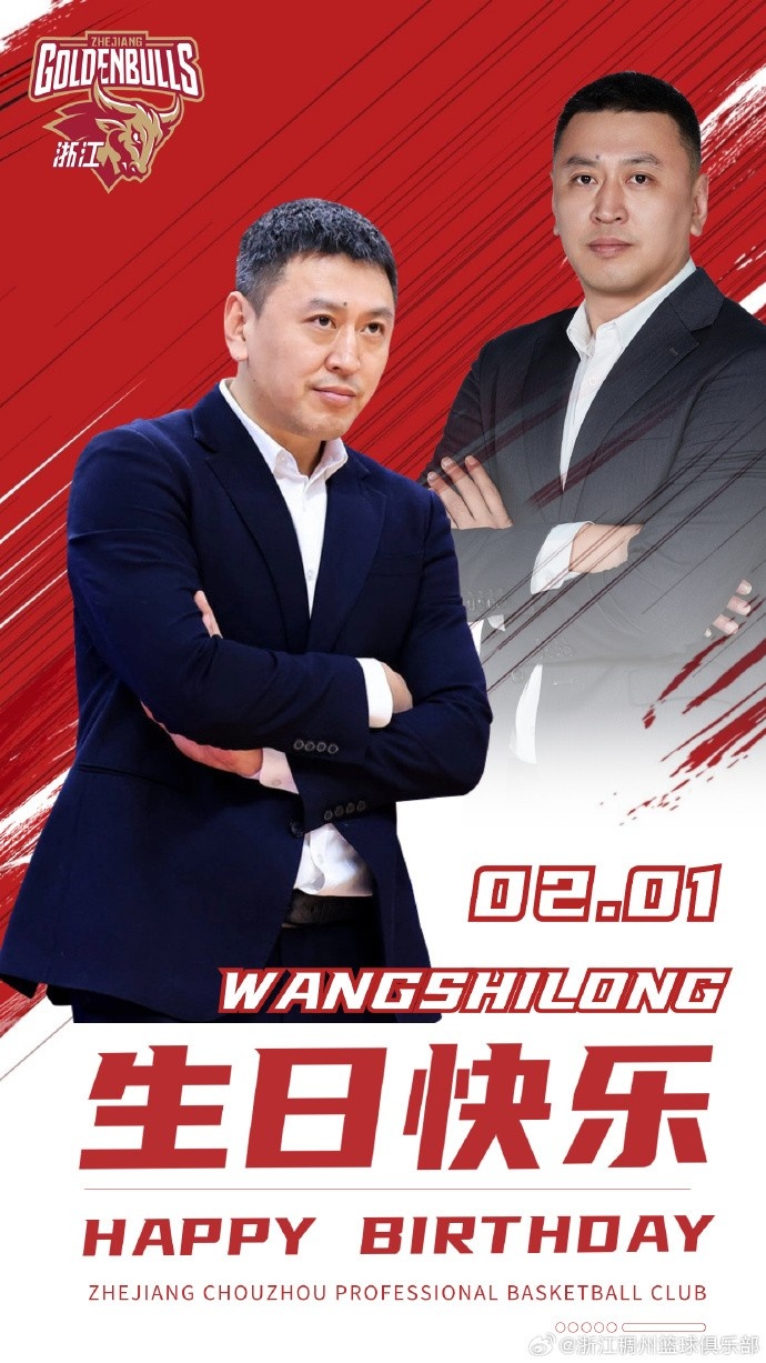 今天是浙江主帅王世龙43岁生日,浙江官博向他送上了祝福,配文写道:“最好的生日礼物, 祝王导生日快乐。”