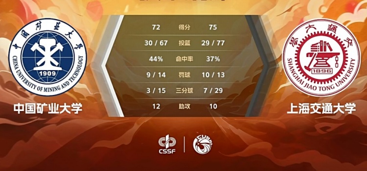末节决战,赵若含率先两分命中,李欣彤打入篮下再度追分两分,此后中国矿大明显体力下降,赵若含和马天宇联手帮助上海交大将领先优势扩大到10分。王泽茹突破打进为中国矿大止血,上海交大连续失误,范文馨一记超远三分稳住局面,随后王珍连续两次抢三分都未能命中,上海交大也连续进攻不中,李欣彤连续两记三分续命,不过时间也只剩11.1秒,中国矿大最后连续逼抢犯规,李欣彤犯满离场,范文馨两罚不中,但赵若含拿到关键前场篮板,时间走完,比赛结束,上海交大75-72险胜中国矿大夺得东南赛区冠军,上海交大收获东南赛区三连冠。
