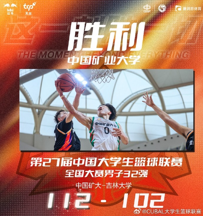 末节开局花志成和林晓峰的进球两度为球队追至8分但都无力再进一步,中国矿大总能关键时刻拿分,艾渝和肖恺的相继得分一直维持领先,随后在吉林大学哑火的阶段又依靠9-4的攻势拉开15分的优势奠定胜局。这之后中国矿大打得更加稳定一直确保优势。最终,中国矿业大学112-102击败吉林大学拿下比赛。