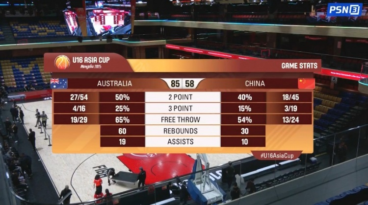比赛开始,双方都较快进入状态,张懿赵杰联手张淳智撑起中国队进攻,但澳大利亚还是掌握微弱领先,石洺豪压哨三分追到差1分,次节双方命中率都有下降,只能靠罚球取分,但中国队一度反超比分,随后双方比分交替领先,半场中国队依然落后1分。下半场,双方继续胶着拉锯战,中国队进攻端突然停滞,近4分钟仅得2分,澳大利亚顺势10-2拉开比分,三节中国队落后到12分,末节澳大利亚后卫保罗连砍9分带队继续扩大领先,中国队未能上演奇迹,分差被拉开20分以上,最终中国队58-85不敌澳大利亚,憾失冠军。
