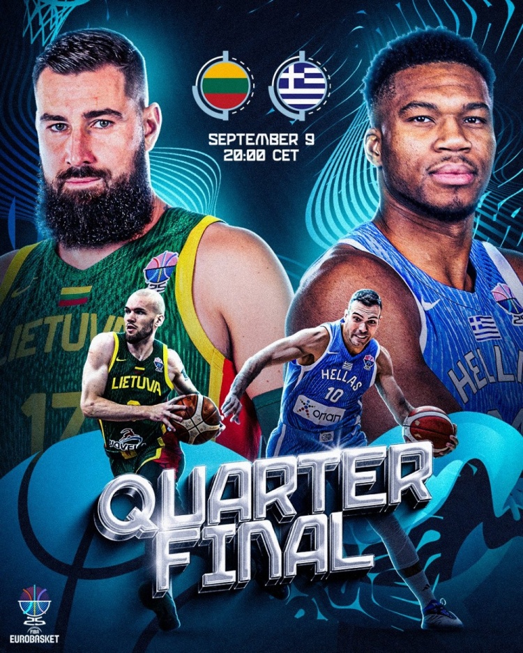 直播吧9月10日讯 男篮欧锦赛1/4决赛,希腊对阵立陶宛。