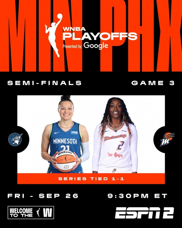 直播吧9月27日讯 WNBA季后赛半决赛G3,菲尼克斯水星回到主场迎战明尼苏达山猫。前两场比赛双方打成1-1。