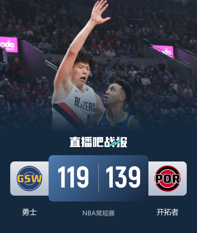 比赛上来,勇士就利用一波9-0的小高潮取得领先,因为克林根早早两犯,首节还剩6分34秒杨瀚森替补登场,不过只打了三分钟拿到1个篮板就被换下场,次节他没有再获得出场时间,不过开拓者的进攻彻底打开,单节狂轰41分建立起两位数的领先优势,半场结束时勇士落后13分;下半场回来,勇士在库里的带领下多次发起追分,但开拓者总能给出回应,分差始终保持在十分以上,末节开拓者先拿六分并利用一波攻势将比赛悬念彻底打没,比赛还剩3分43秒杨瀚森再次登场并送出单臂暴扣,随后还有连续大帽送出,最终开拓者轻取勇士迎来赛季首胜。