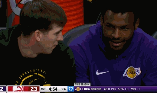 聊啥呢?东契奇罚球不进 里夫斯和布朗尼小声蛐蛐 后者会心一笑