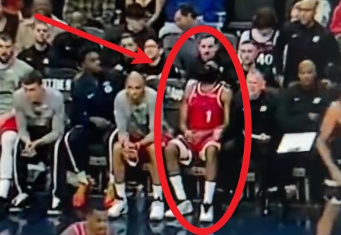 有点疲惫?哈登被换下场一屁股瘫坐在板凳上&抬头仰面