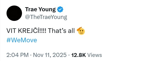 对此,因伤缺阵的特雷·杨更推道:“维特·克雷伊奇,给你的只有致敬了🫡。”