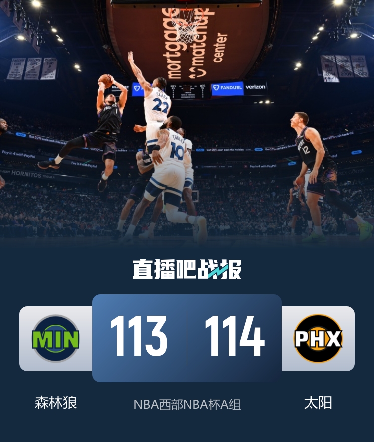 直播吧11月22日讯 NBA杯赛A组开打,西部第七的太阳坐镇主场迎战西部第六的森林狼。