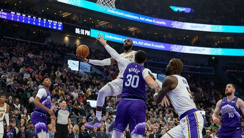 此役一上来詹姆斯暴扣率先破僵,东契奇和里夫斯续上火力轮番取分,乔治率队及时回应,首节结束时湖人领先2分,次节回来,双方状态依旧继续僵持,詹姆斯连投带传无人可挡,湖人中段发力拉开比分,半场战罢,湖人继续领先7分。易边再战后艾顿伤退,乔治发力单节独揽13分,爵士一波11-0实现反超,詹姆斯反击暴扣止颓,三节结束后湖人守住3分优势,末节决战,湖人连造杀伤拉开比分,决胜时刻爵士一波12-4拉回悬念,东契奇两罚中一后爵士绝杀未果,最终湖人108-106再胜对手迎4连胜,反超掘金升至西部第二,同时送给爵士4连败。