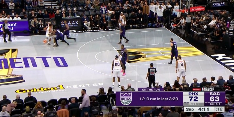 转瞬即逝!国王在3分29秒内轰出12-0攻击波 追到差9分!