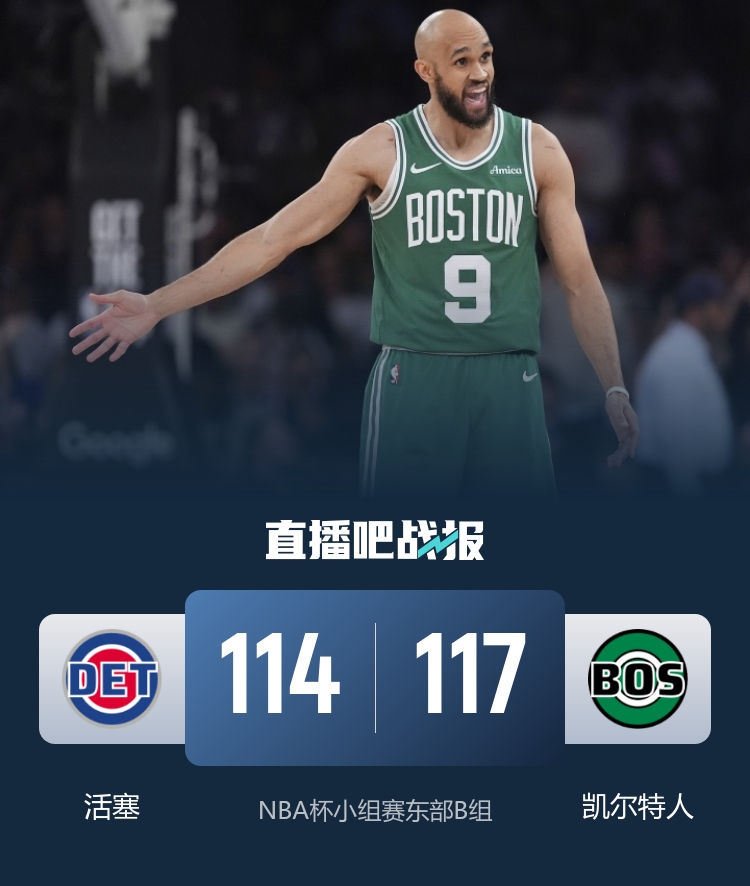 直播吧11月27日讯 NBA杯,凯尔特人主场迎战活塞。凯尔特人9胜8负东部第10,活塞则是13连胜后15胜2负。
