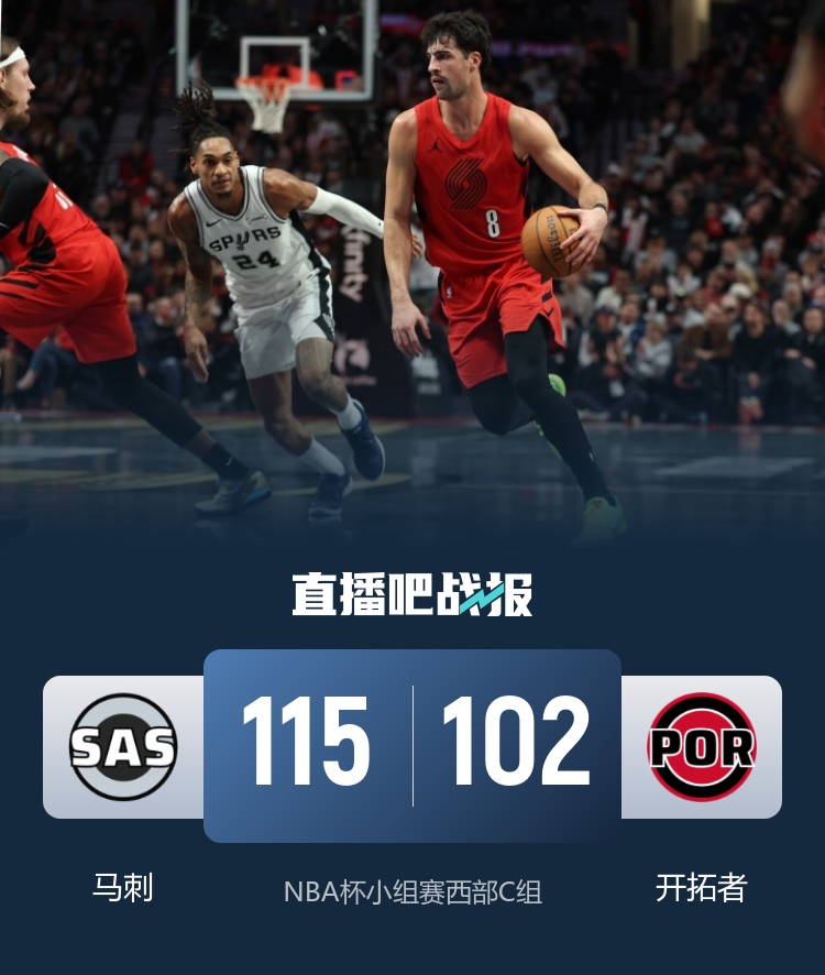 开拓者(8-11):阿夫迪亚37分6板8助、格兰特13分4板2助、夏普11分5板2助、卡马拉10分5板1助、威廉姆斯10分5板1助4帽、克林根9分11板1助、穆雷8分6板3助、西索科3分2板2助、乐福1分1板1助、吕佩尔2板、杨瀚森1板