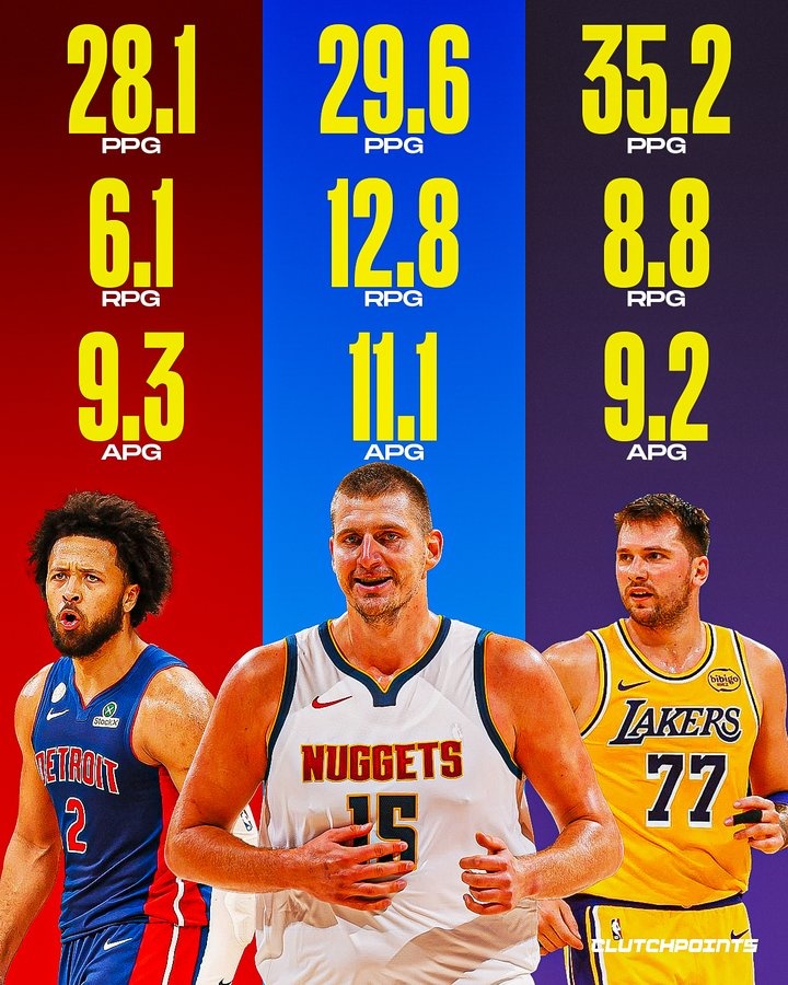 >赛季至今达到场均27+6+9的球员:约基奇、东契奇、康宁汉姆