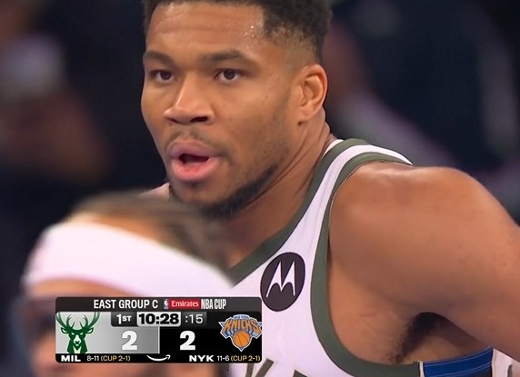 >有点麻烦!字母哥被唐斯骗犯规 开场不到2分钟2犯在身