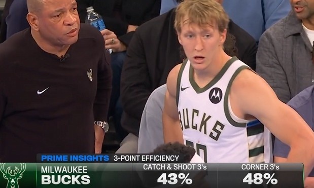 >小伯德!AJ·格林连中三分 帮助雄鹿获得两位数优势