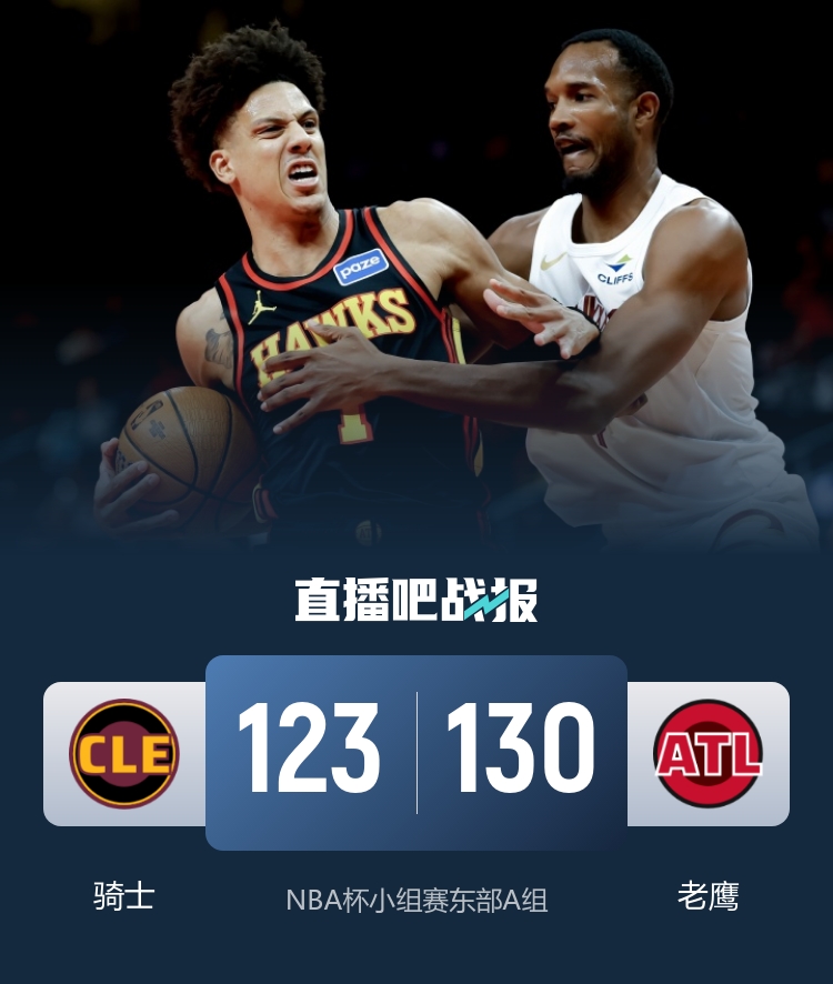 直播吧11月29日讯 NBA杯小组赛继续进行,老鹰坐镇主场迎战骑士队,此前老鹰11胜8负排名东部第六,骑士则是12胜7负位列东部第五,此役波尔津吉斯等人缺阵。