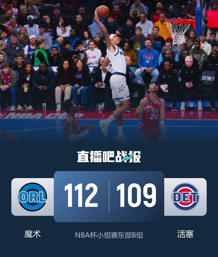 直播吧11月29日讯 NBA杯赛今日继续开打,东部B组的活塞坐镇主场迎战魔术。魔术目前3胜0负排在小组第一,活塞紧随其后排在第二。