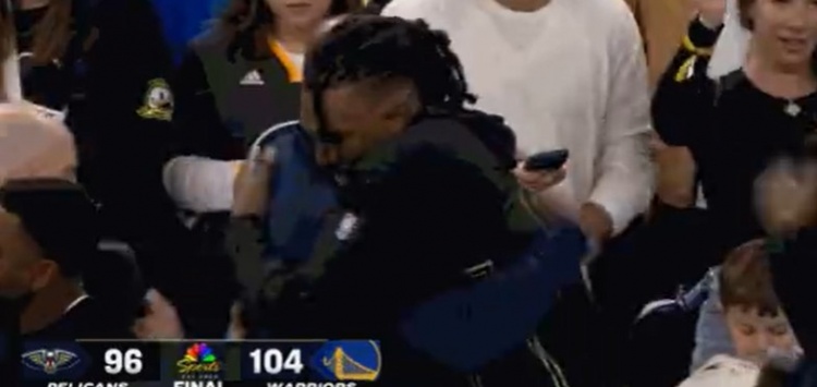 >金州的功臣!凯文·卢尼赛后和勇士众将以及教练组拥抱寒暄