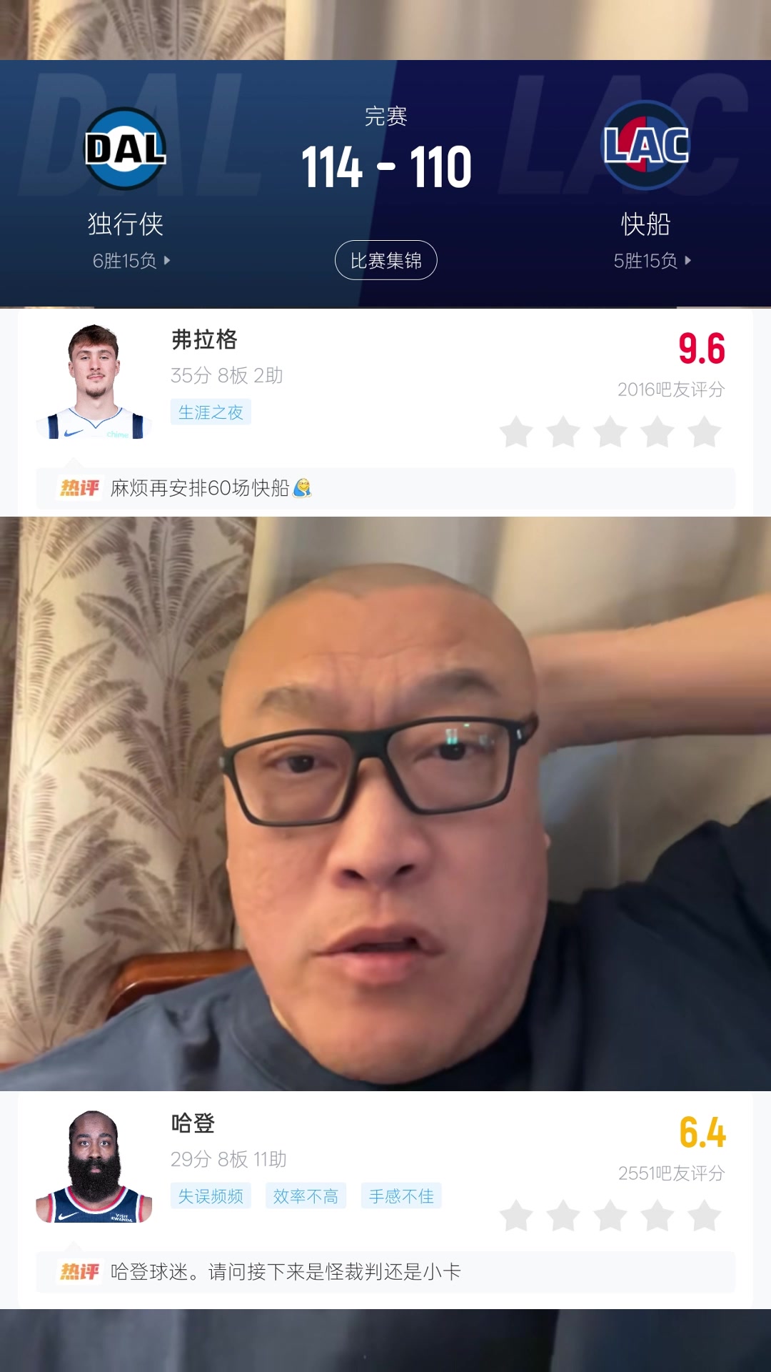 马健:目前快船太吃哈登&小卡状态 他们是联盟中最需要交易的球队