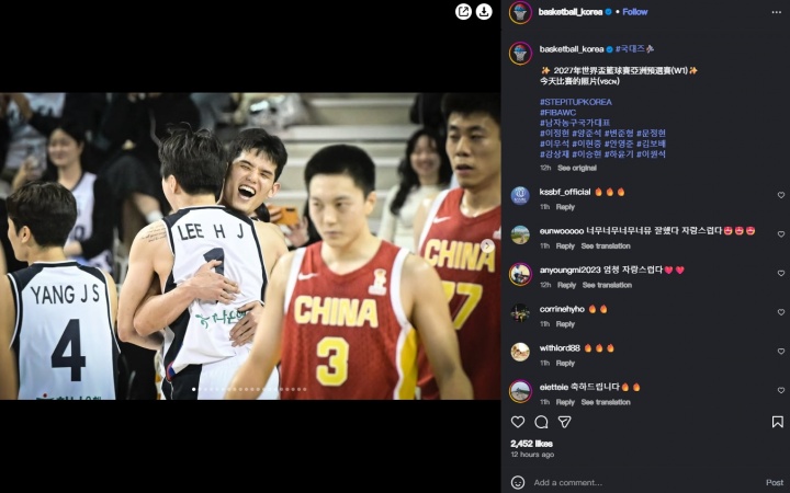 >韩国篮协发庆祝照片:胡明轩&张镇麟表情落寞出现在封面当中
