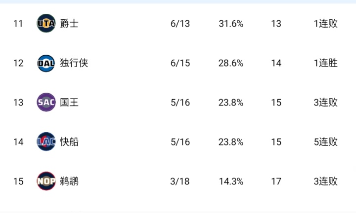 最近16场输了14场!快船惨遭5连败&排名再次降至西部倒数第二位