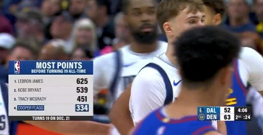 都是大神!19岁前得分榜弗拉格第四 詹科麦前三
