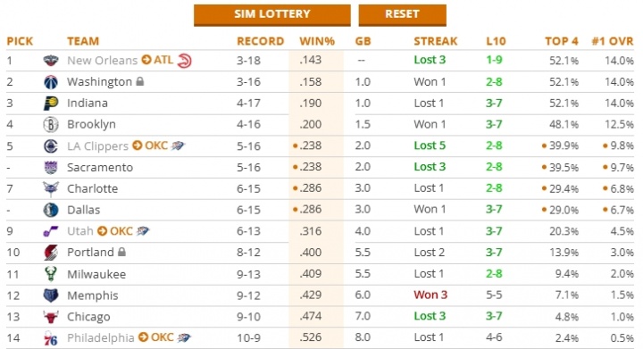 >👿恐怖故事!雷霆抽前四顺位概率39.9% 状元签9.8%!