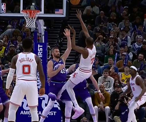 裁判吹罚乐福投篮犯规,杜兰特两罚