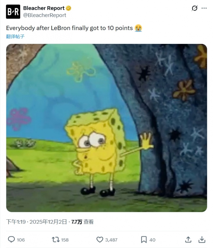 >B/R发文:大家在詹姆斯得分上双后都长舒一口气😭