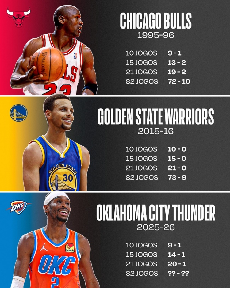 对比72胜公牛&73胜勇士 前21场成绩不吃亏!雷霆最终会是多少胜?