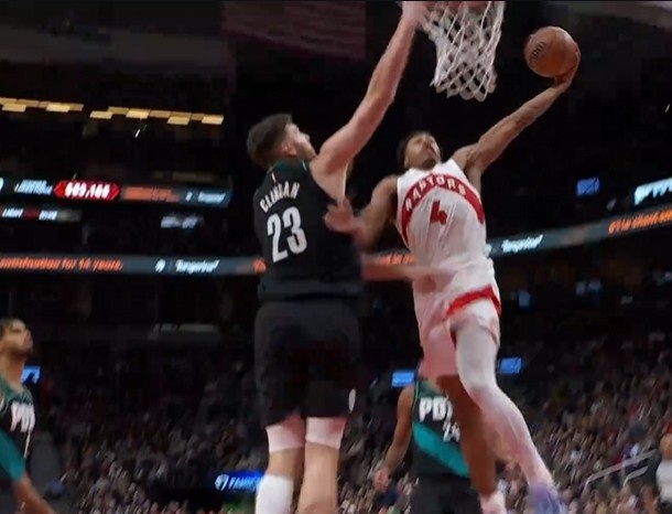 >力劈华山!斯科蒂·巴恩斯突破左手单臂隔扣克林根