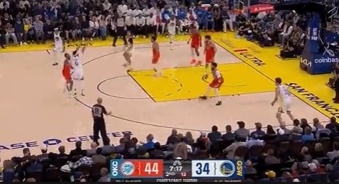 直播吧12月3日讯 NBA常规赛,勇士半场44-63落后雷霆。