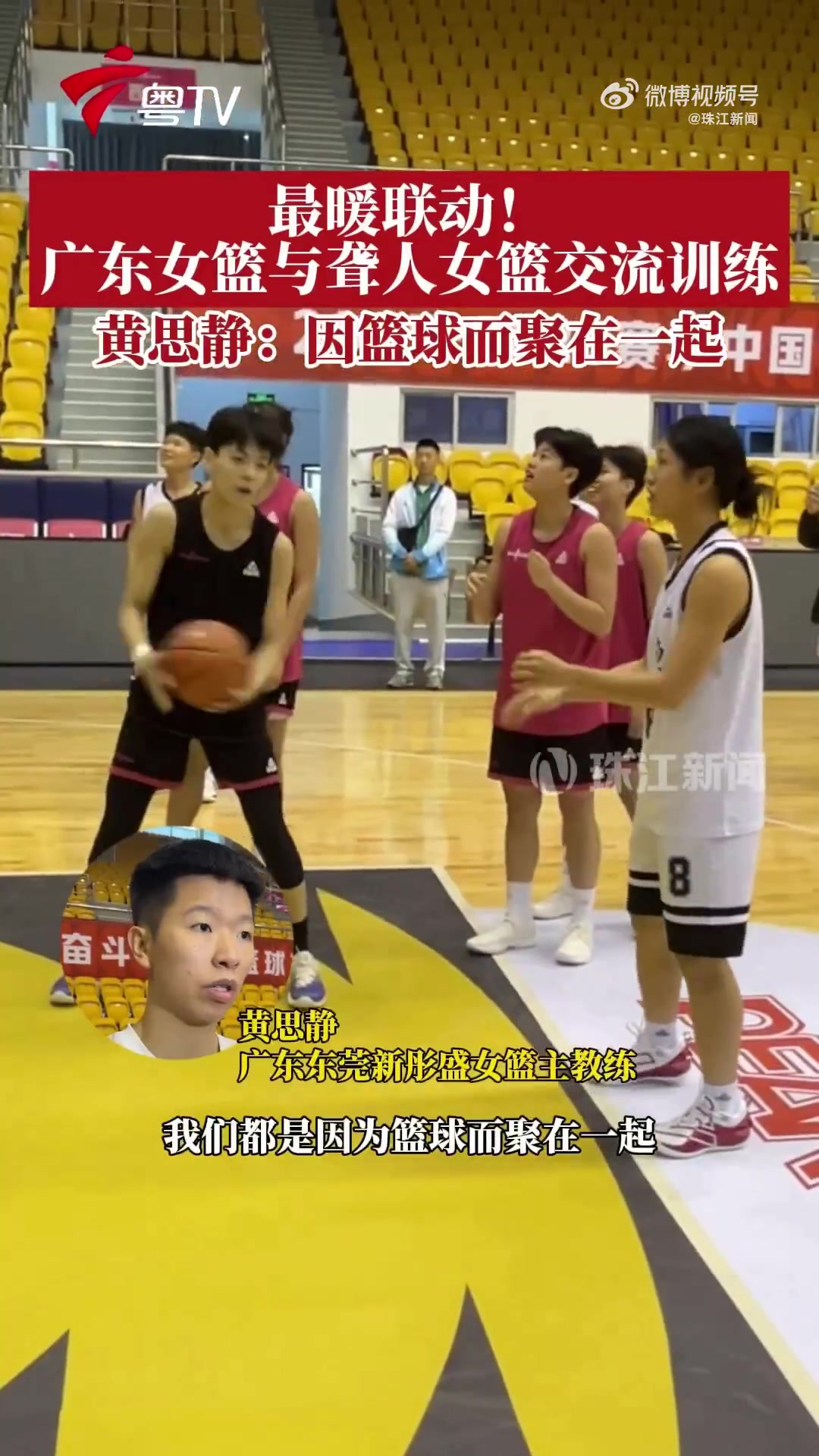 【广东女篮与聋人女篮携手训练】今天是国际残疾人日,上午的大朗体育馆迎来了一批特殊的客人,广东省女子聋人篮球队来到这里,与广东女篮进行训练交流。广东女篮主帅黄思静携全队参加活动,就连卡多佐和科利尔两名外援也参与其中,与聋人球员进行趣味互动。
