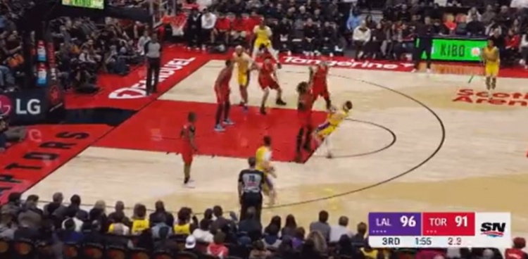 >手上真有活儿!里夫斯身体失衡 随手一扔直接打成2+1