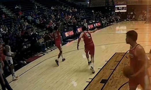 兴奋起来了!杨瀚森退防被芬克撞到造关键进攻犯规 比出手势庆祝