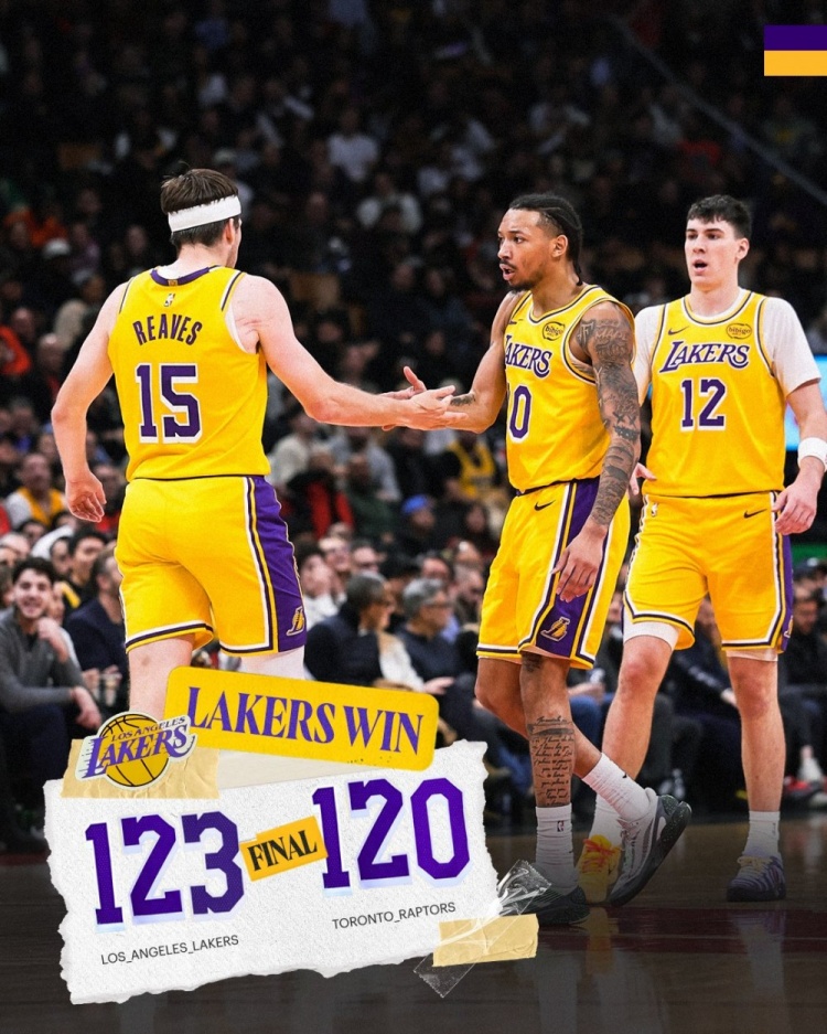 直播吧12月5日讯 今日,湖人123-120客场险胜猛龙。