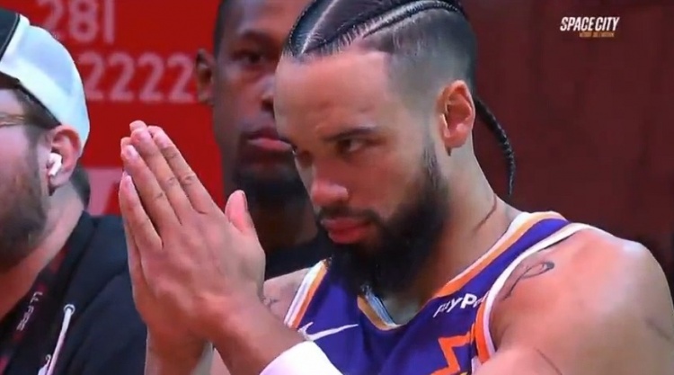 火箭为狄龙播放致敬视频 后者双手合十&并向全场观众示意❤️