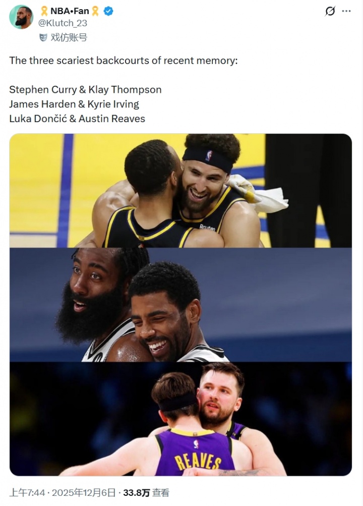 >美媒:近些年最令人胆寒的后场组合 水花 登欧 东里组合 同意吗?