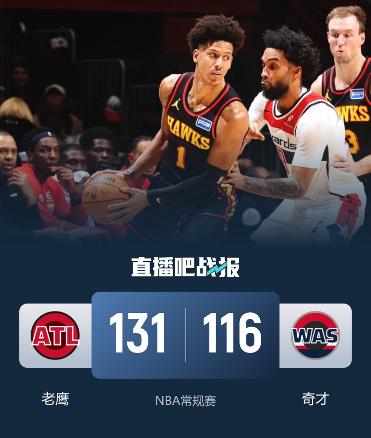 直播吧12月7日讯 NBA常规赛,老鹰客场挑战奇才。老鹰13胜11负,奇才3胜18负。