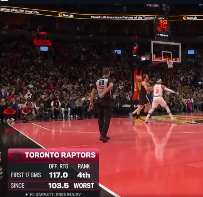 但是当巴雷特膝盖受伤后,猛龙的进攻效率来到103.5,联盟最差!