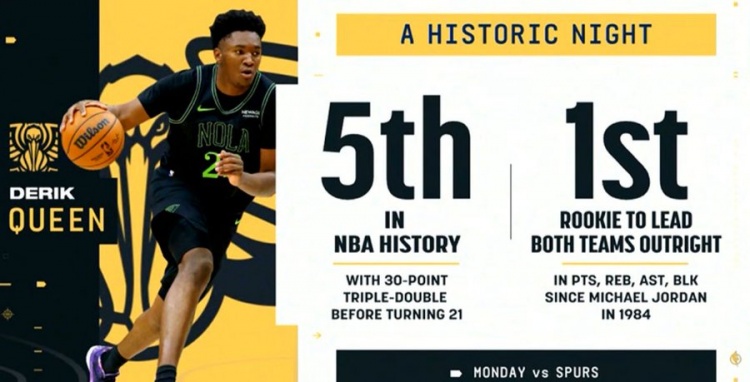 >33+10+10+4帽!奎因昨日得分篮板助攻盖帽领跑两队 乔丹后首新秀