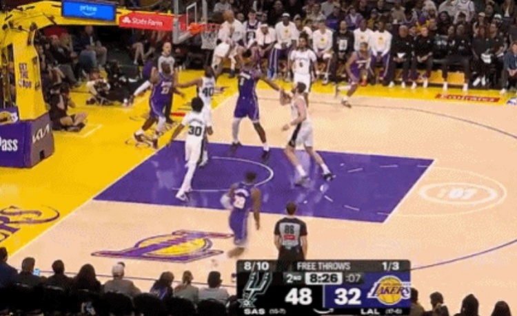 开张!詹姆斯强攻不中 艾顿补篮得手命中个人本场首球