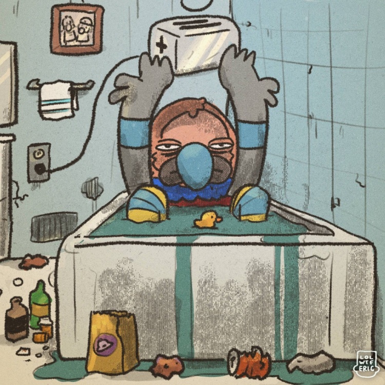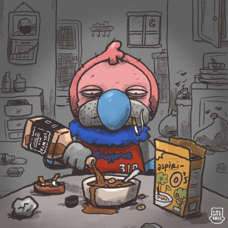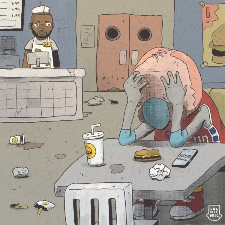 注:该球迷画了很多快船输球后吉祥物颓废摆烂的搞笑漫画,快船每输一场,他就画一幅,今天的插图都是他画的。