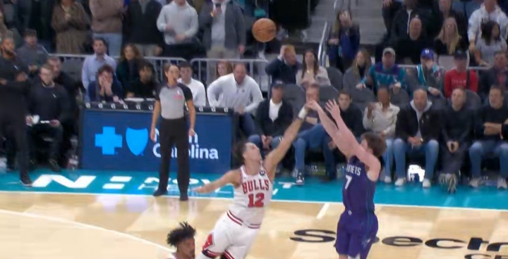 结束啦!克尼佩尔弧顶三分造成扎克·科林斯犯规 公牛挑战成功!
