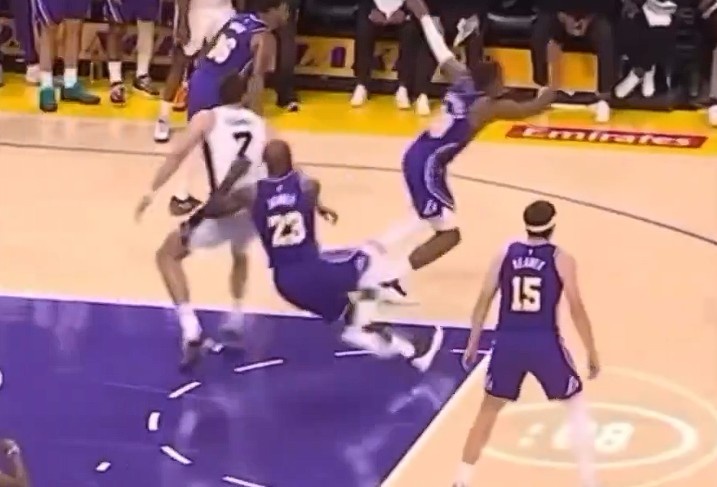 >👀卡斯尔后撤步三分终结詹姆斯脚踝 后者别脚横着摔翻在地