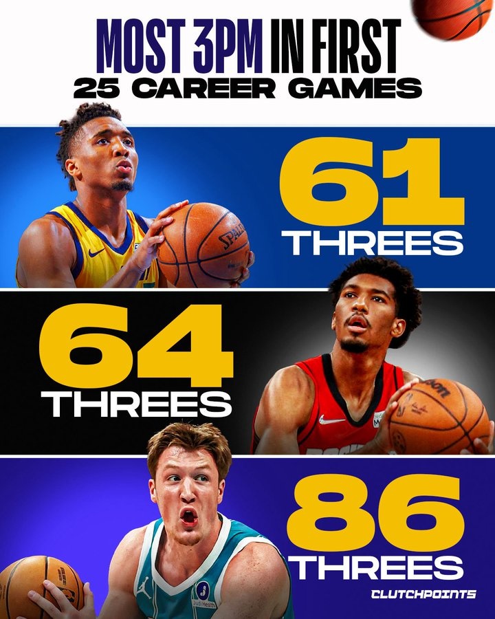 生涯前25场三分数前3:克尼佩尔86 阿莫尼·布鲁克斯64 米切尔61
