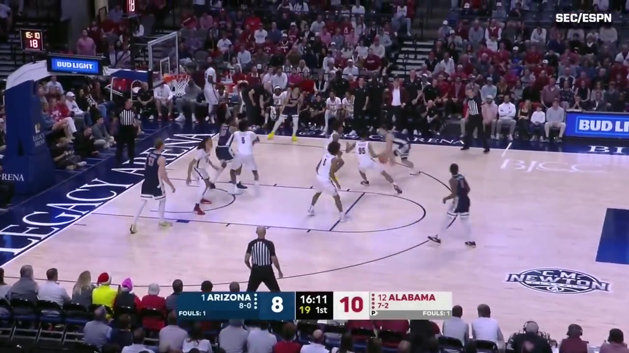 直播吧12月14日讯 今天结束的一场NCAA比赛中,亚利桑那大学96-75轻取阿拉巴马大学。