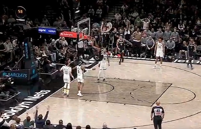 三个人看着人家扣!篮网三线快攻 克拉克斯顿双手大猩猩暴扣!